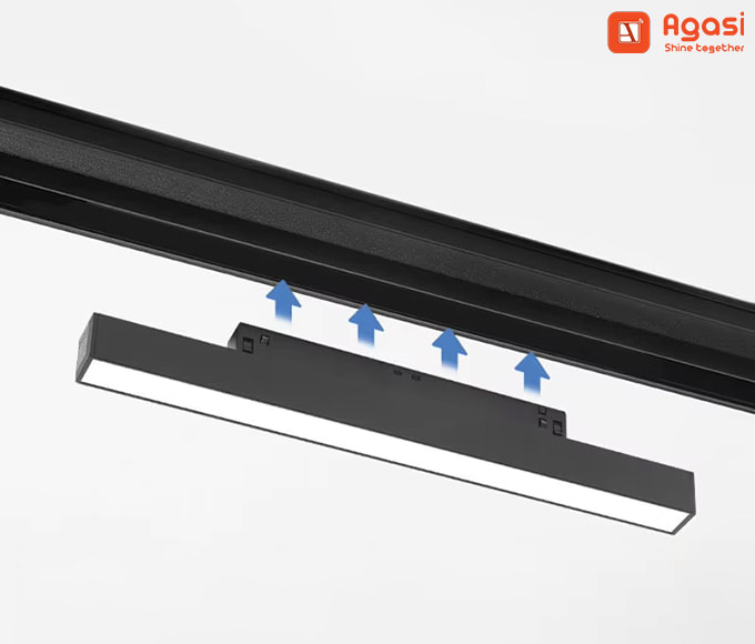 Nam châm từ tính tạo lực hút giữa thanh ray và đèn LED, giúp đèn bám chặt vào ray và thiết lập kết nối điện an toàn. Hệ thống sử dụng điện áp thấp (thường là 48V) để đảm bảo an toàn cho người sử dụng, đồng thời loại bỏ hoàn toàn nguy cơ bị điện giật.